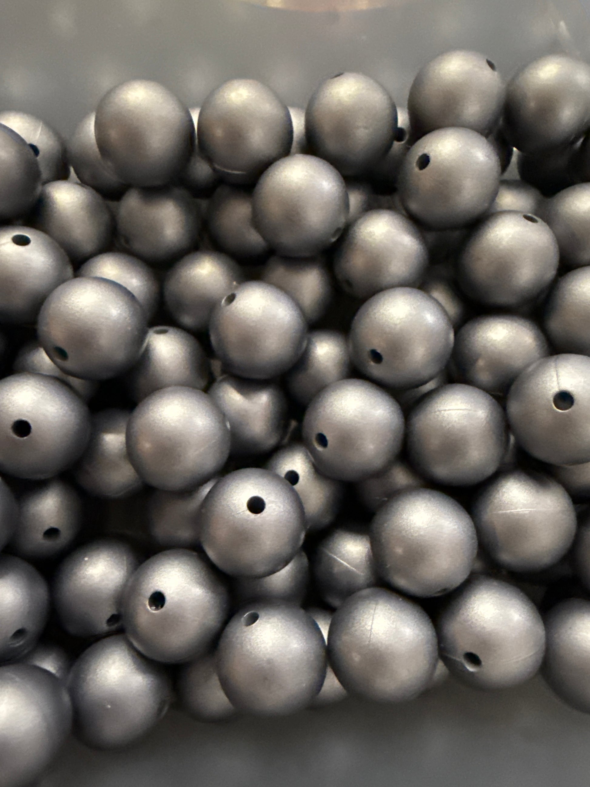 15mm round specialty beads - Metallic Dark Silver