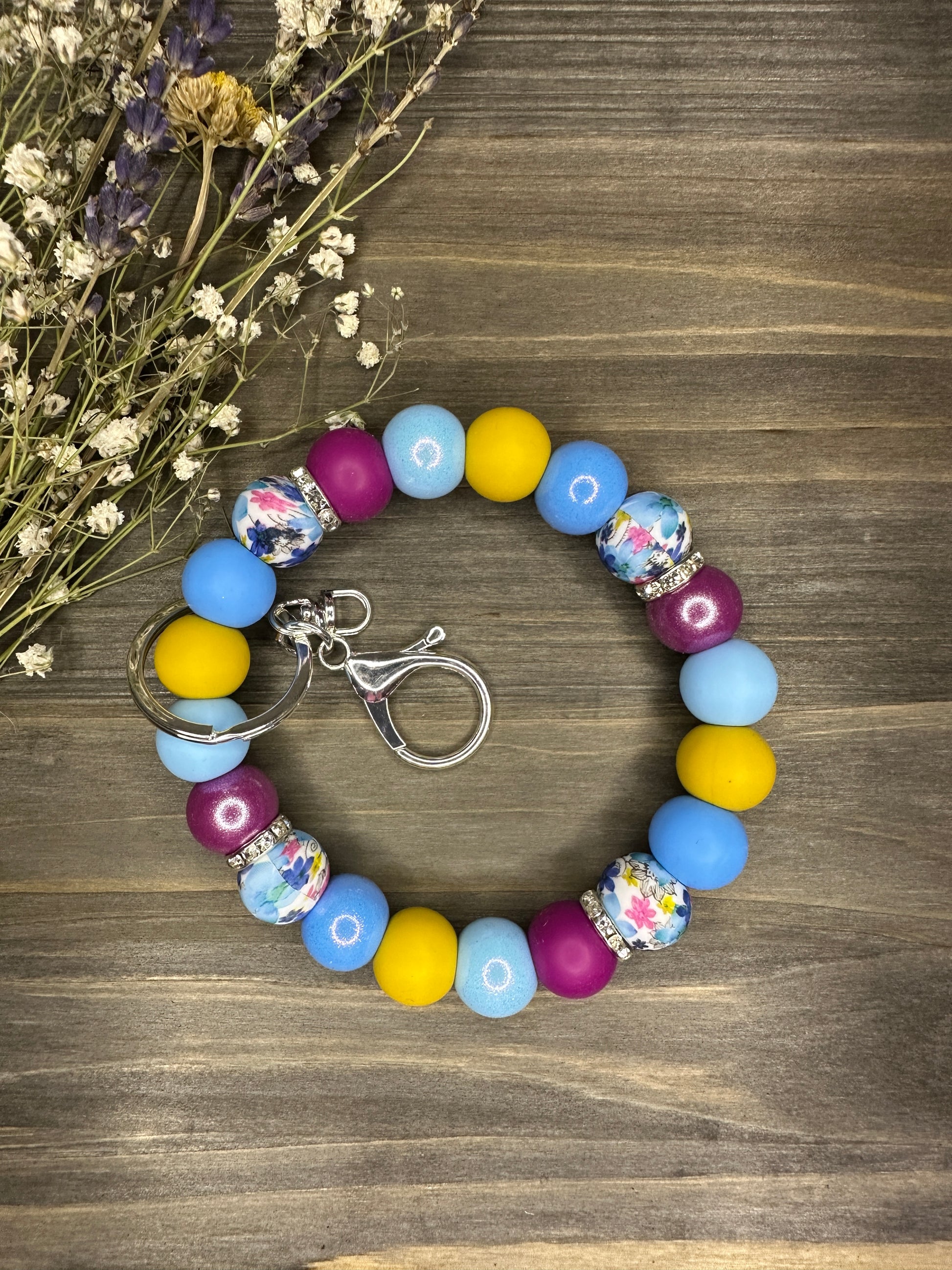 Easily locate your keys within your handbag, backpack, or diaper bag using this convenient and stylish silicone bead wristlet. Keep your keys accessible while keeping your hands free. Simply roll the key ring onto your wrist for a fashionable and practical solution.